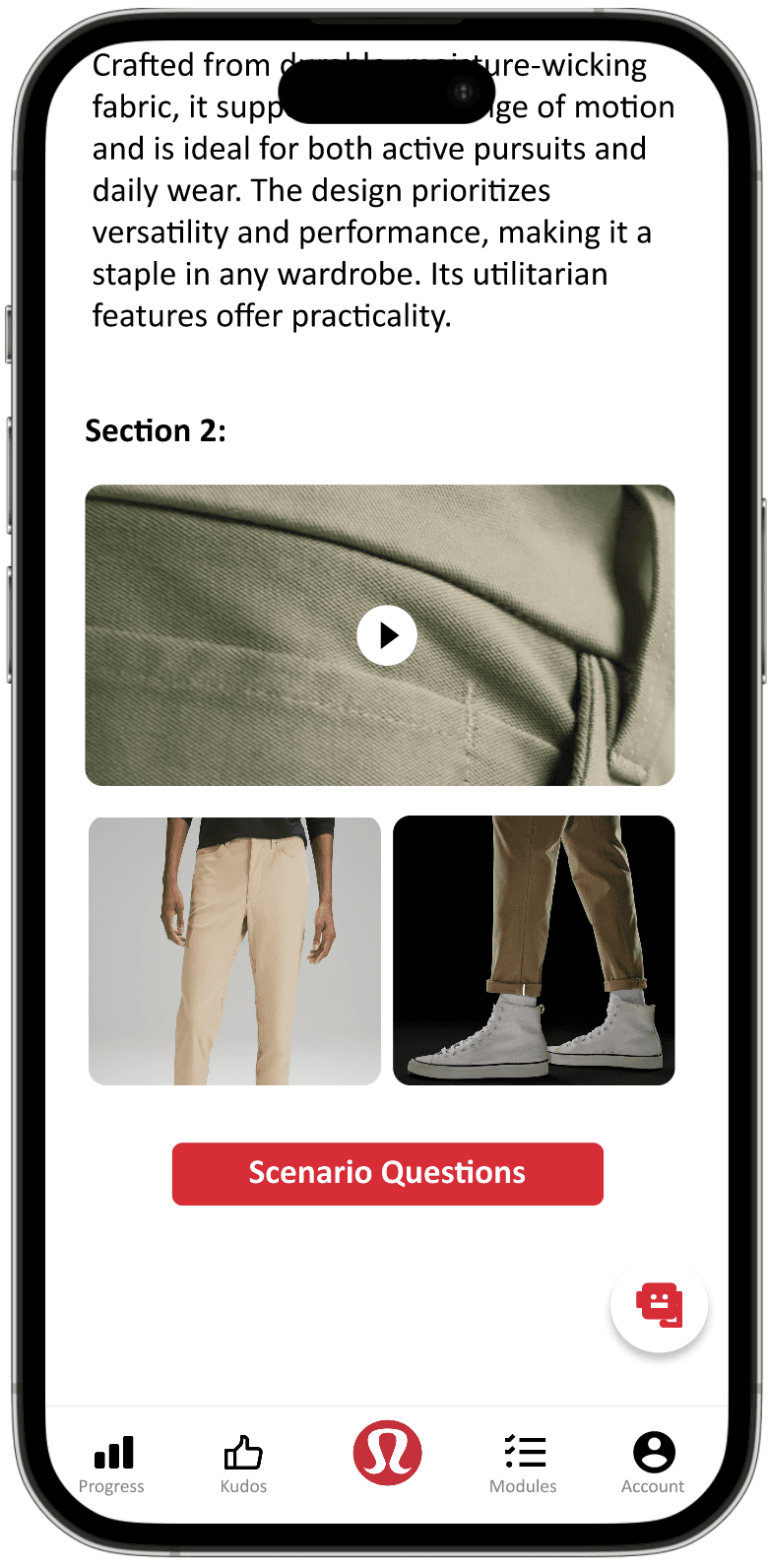 Mastery of Lululemon's product knowledge by personalized and interactive onboarding process for sales associate