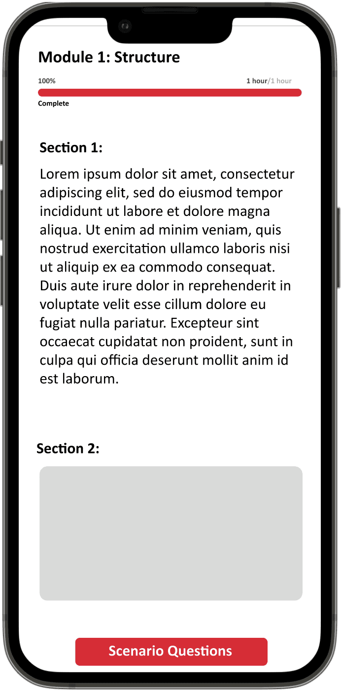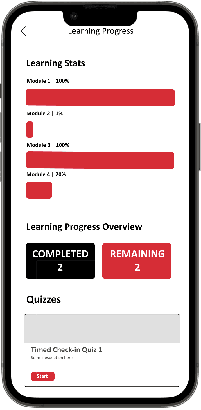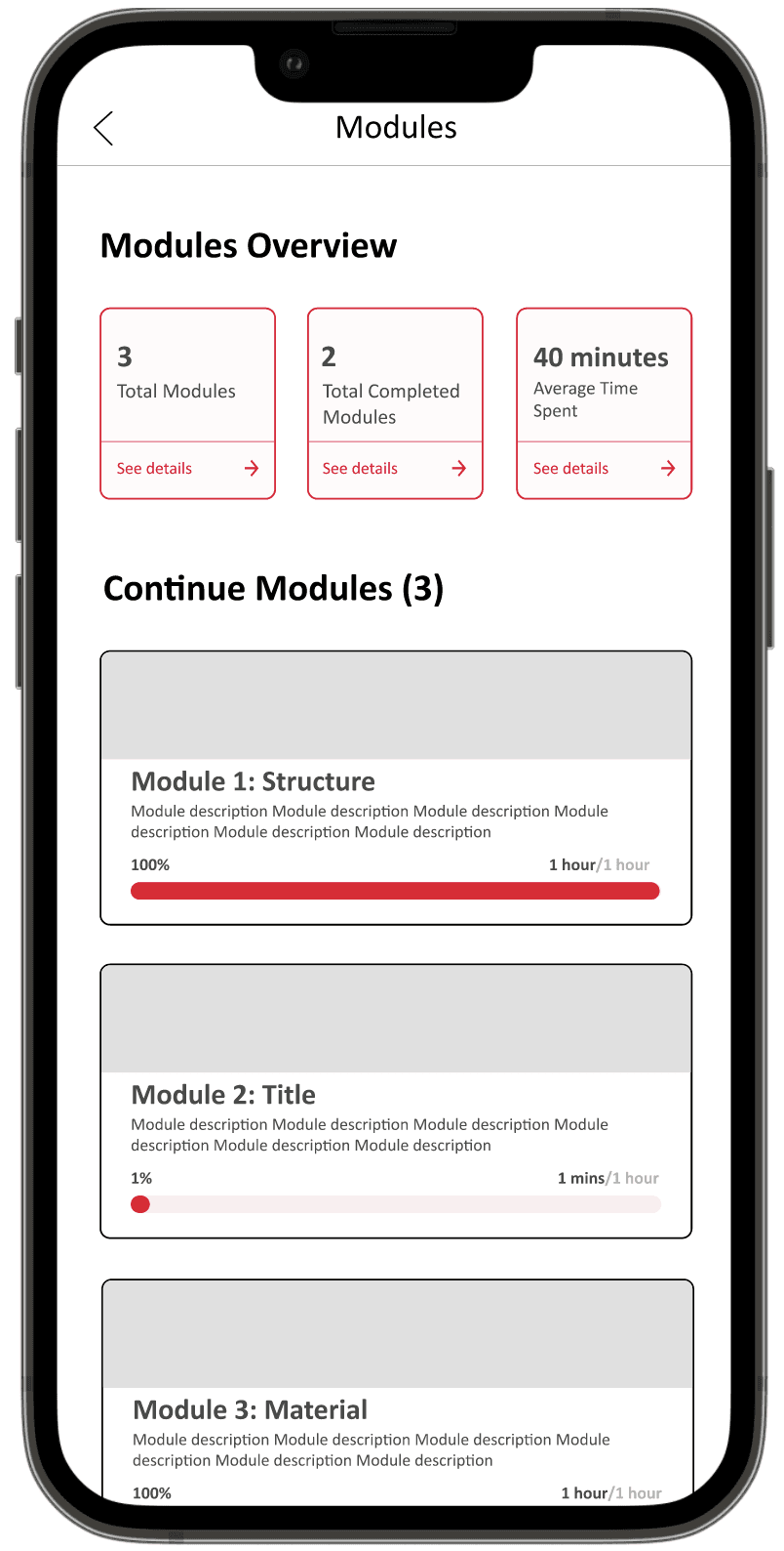 Our Learning Progress Page helps by tracking your completed and incomplete modules and time spent on each, making it easier to stay on top of key content.