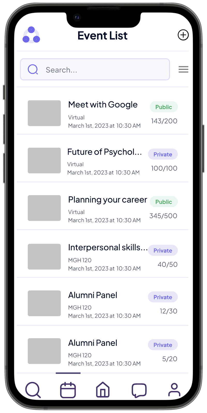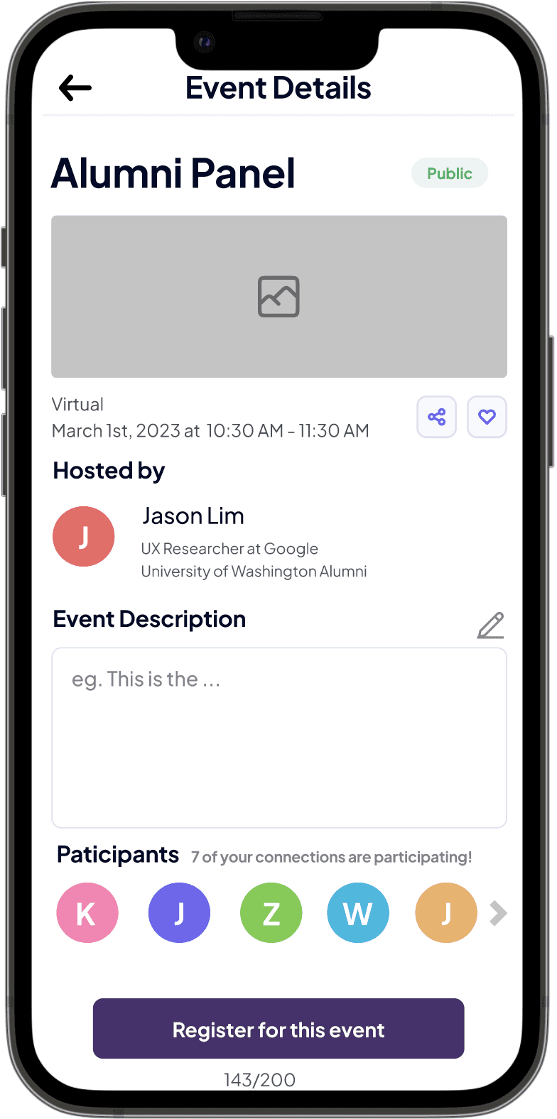 Alumni can join an event by clicking on the desired event and able to view the number of registered participants.