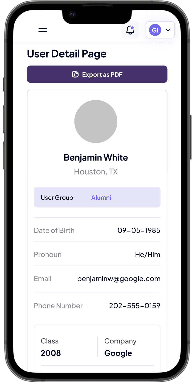 Customizable profile tags for identifying and connect with alumni based on shared interests, skills, and academic backgrounds.